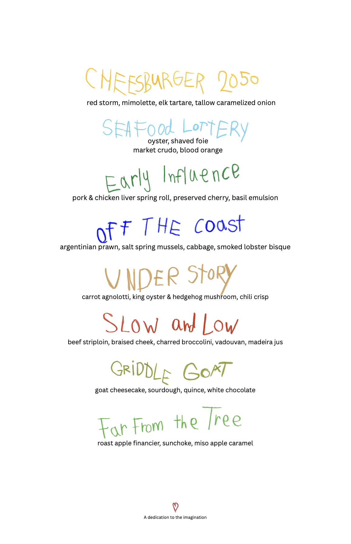 AnnaLena offers a continually evolving tasting menu program, with dishes changing based on the seasons and what product is available to our kitchen team. As such, our menu is always subject to change. Please note that not all ingredients are listed on the menu.
